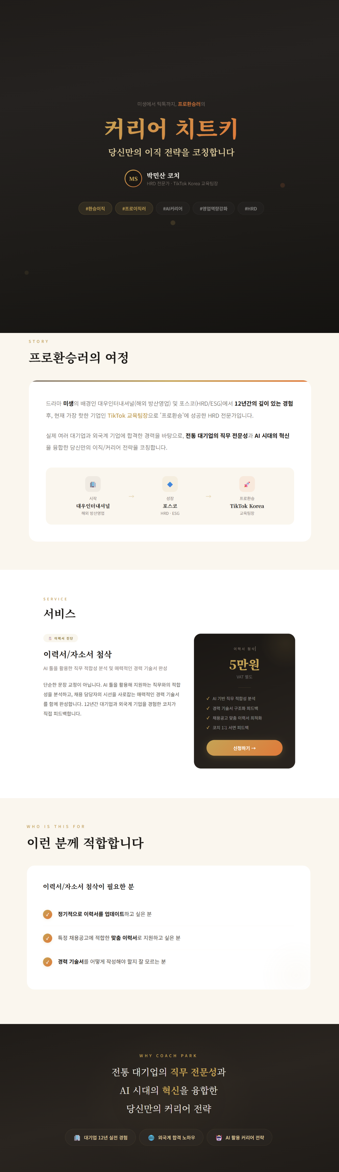 드라마 미생의 배경인 대우인터내셔널(해외 방산영업) 및 포스코(HRD/ESG)에서 12년간의 깊이 있는 경험 후, 현재 가장 핫한 기업인 TikTok 교육팀장으로 '프로환승'에 성공한 HRD 전문가입니다.